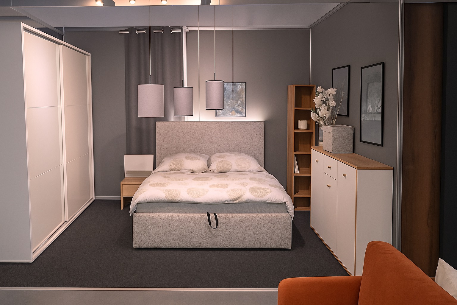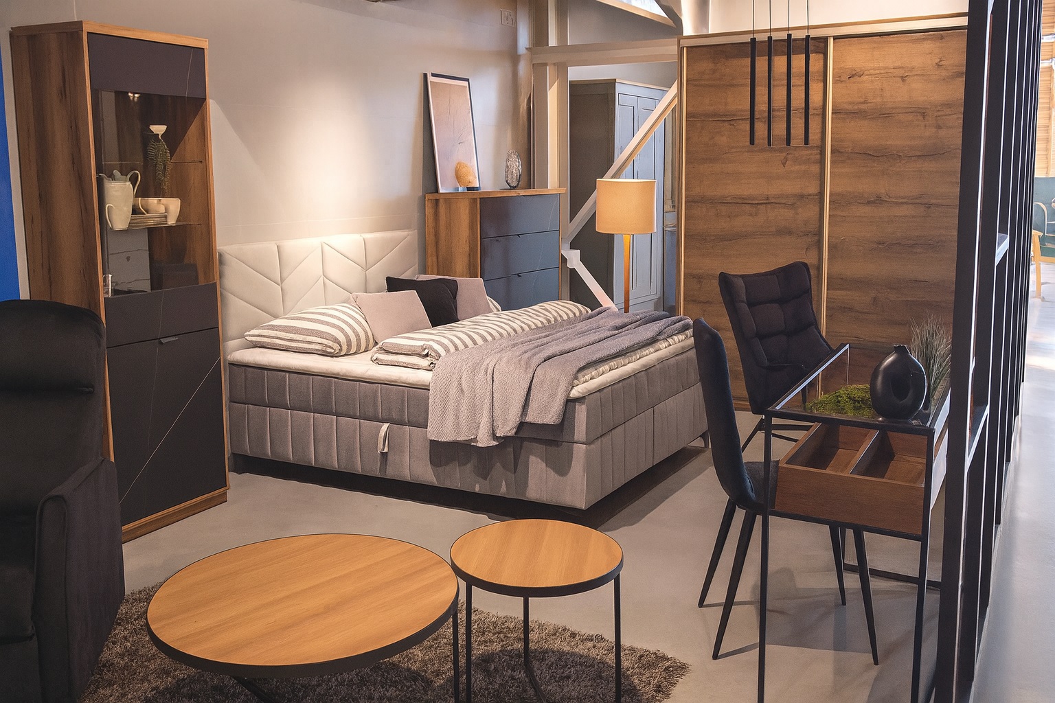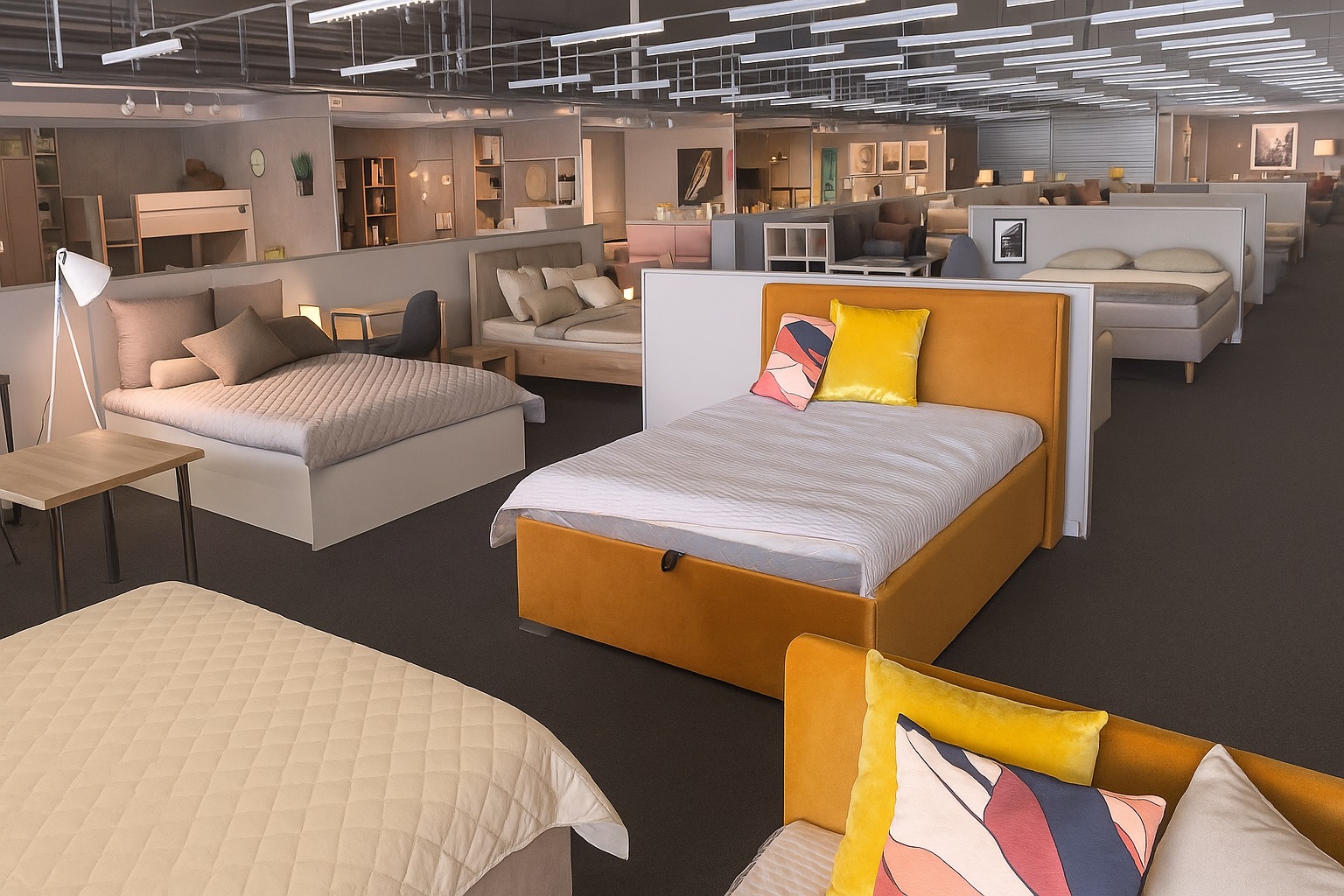 Pawilon 1B to nowoczesny dwupoziomowy obiekt w modnej obecnie stylistyce industrialnej. Obiekt bezpośrednio sąsiaduje i połączony jest z istniejącymi pawilonami: 1A, 2, 4. Na parterze znajdują się przepięknie zaaranżowane ekspozycje mebli do pokoju dziennego, jadalni, meble tapicerowane oraz całe mnóstwo różnego rodzaju dodatków dopasowanych stylistycznie do prezentowanych mebli. Ekspozycje powstały w oparciu o najnowsze trendy w projektowaniu wnętrz i zostały stworzone z najwyższą starannością. Prezentowane tu kolekcje mebli pochodzą z aktualnej oferty firmy BLACK RED WHITE. Po zapoznaniu się z ofertą mebli zgromadzonych na parterze można wygodnie wjechać schodami ruchomymi na piętro gdzie znajdują się kolekcje mebli do sypialni, meble dla dzieci i młodzieży oraz meble tapicerowane. W wyborze mebli swoją pomocą i doradztwem służy personel.