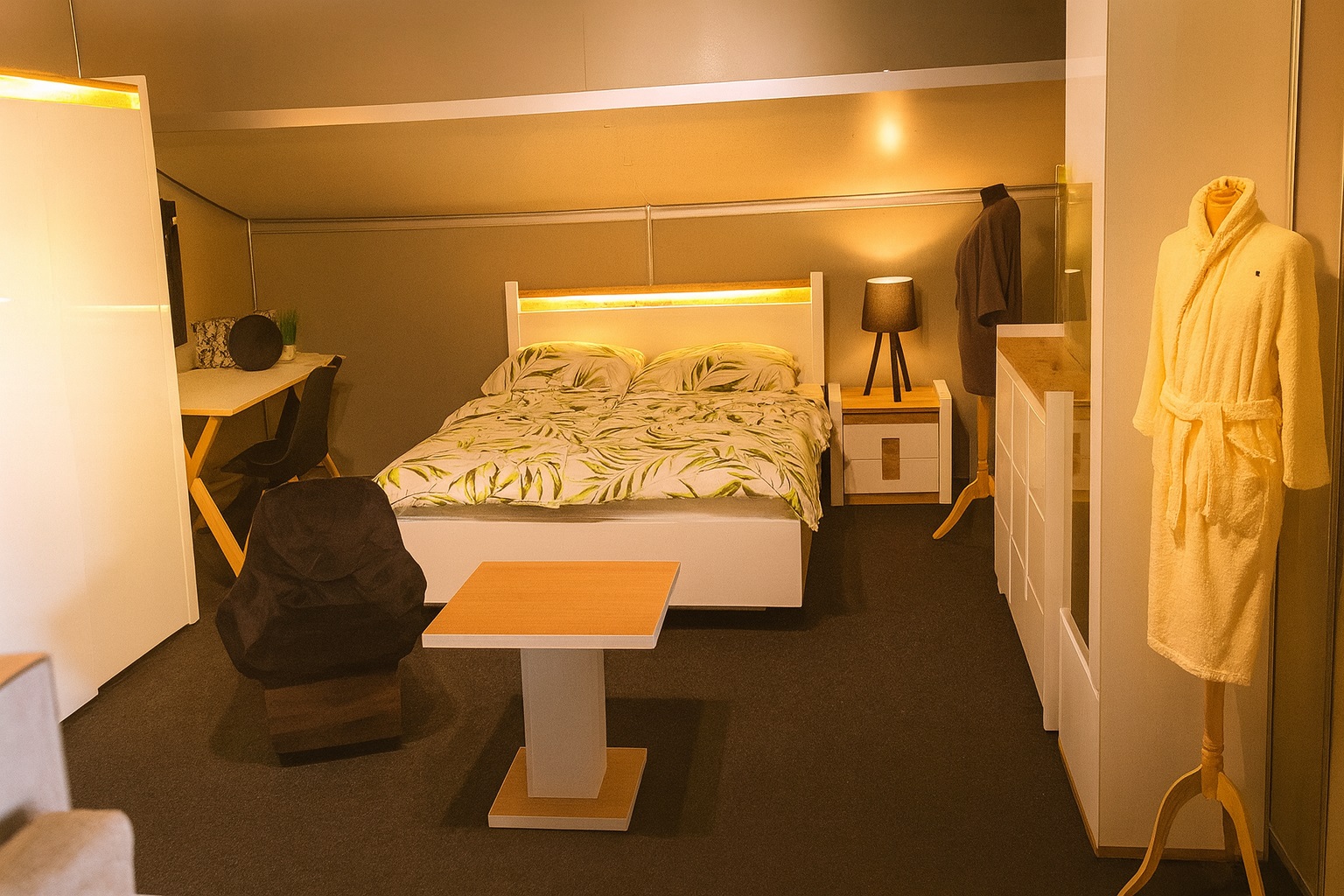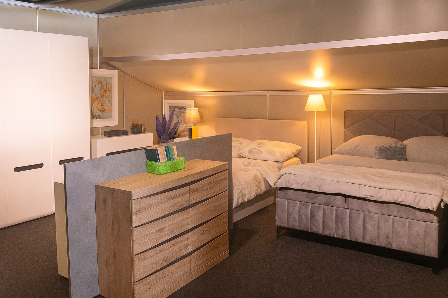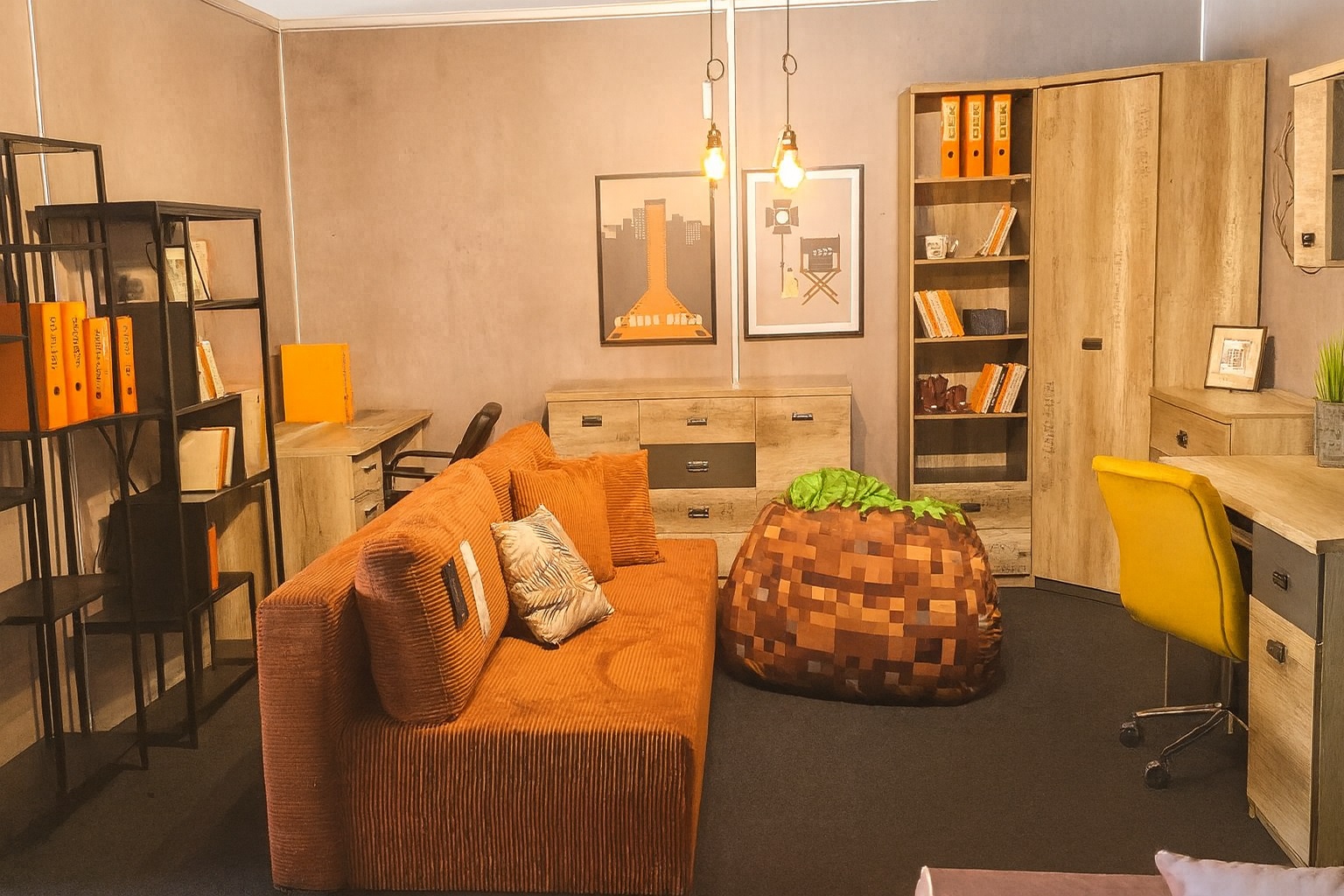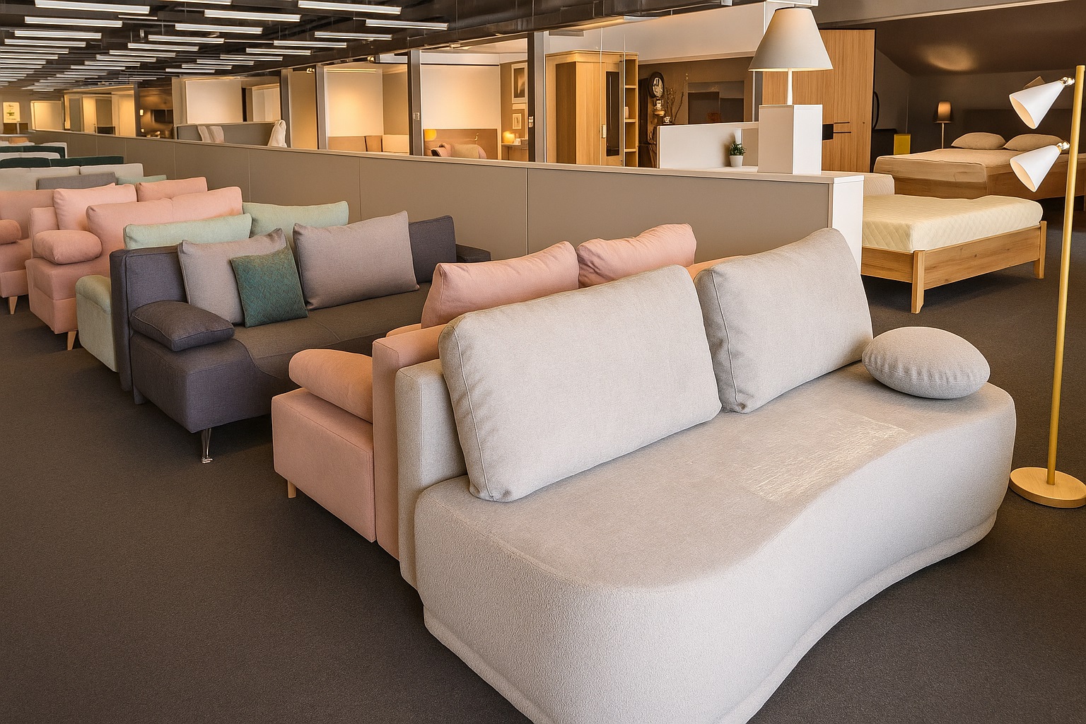 Pawilon 1B to nowoczesny dwupoziomowy obiekt w modnej obecnie stylistyce industrialnej. Obiekt bezpośrednio sąsiaduje i połączony jest z istniejącymi pawilonami: 1A, 2, 4. Na parterze znajdują się przepięknie zaaranżowane ekspozycje mebli do pokoju dziennego, jadalni, meble tapicerowane oraz całe mnóstwo różnego rodzaju dodatków dopasowanych stylistycznie do prezentowanych mebli. Ekspozycje powstały w oparciu o najnowsze trendy w projektowaniu wnętrz i zostały stworzone z najwyższą starannością. Prezentowane tu kolekcje mebli pochodzą z aktualnej oferty firmy BLACK RED WHITE. Po zapoznaniu się z ofertą mebli zgromadzonych na parterze można wygodnie wjechać schodami ruchomymi na piętro gdzie znajdują się kolekcje mebli do sypialni, meble dla dzieci i młodzieży oraz meble tapicerowane. W wyborze mebli swoją pomocą i doradztwem służy personel.